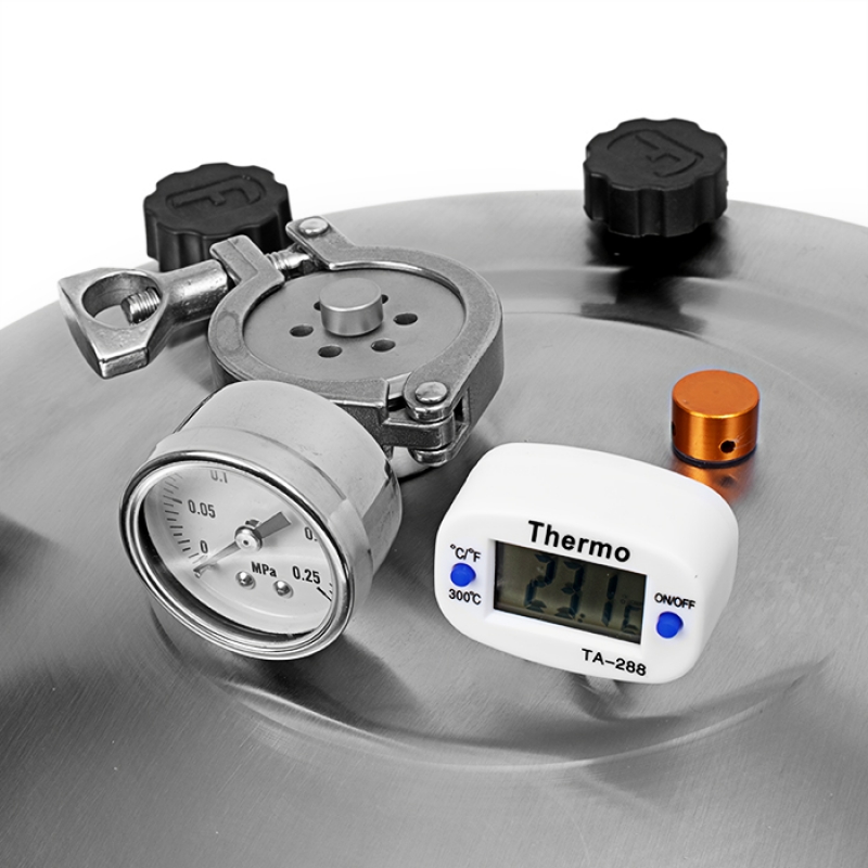 Клапан на крышке сам закроется при температуре 98-100°С, обеспечит герметичность и выведет автоклав в рабочий режим.