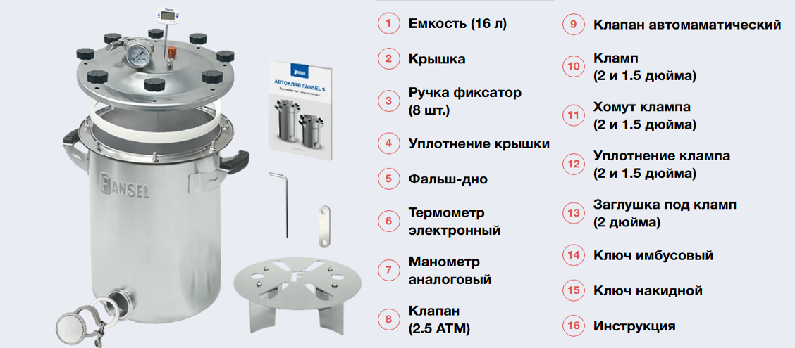 Приобретая автоклав Fansel 3 с сухопарником или колонной на 1,5 дюйма, вы получаете