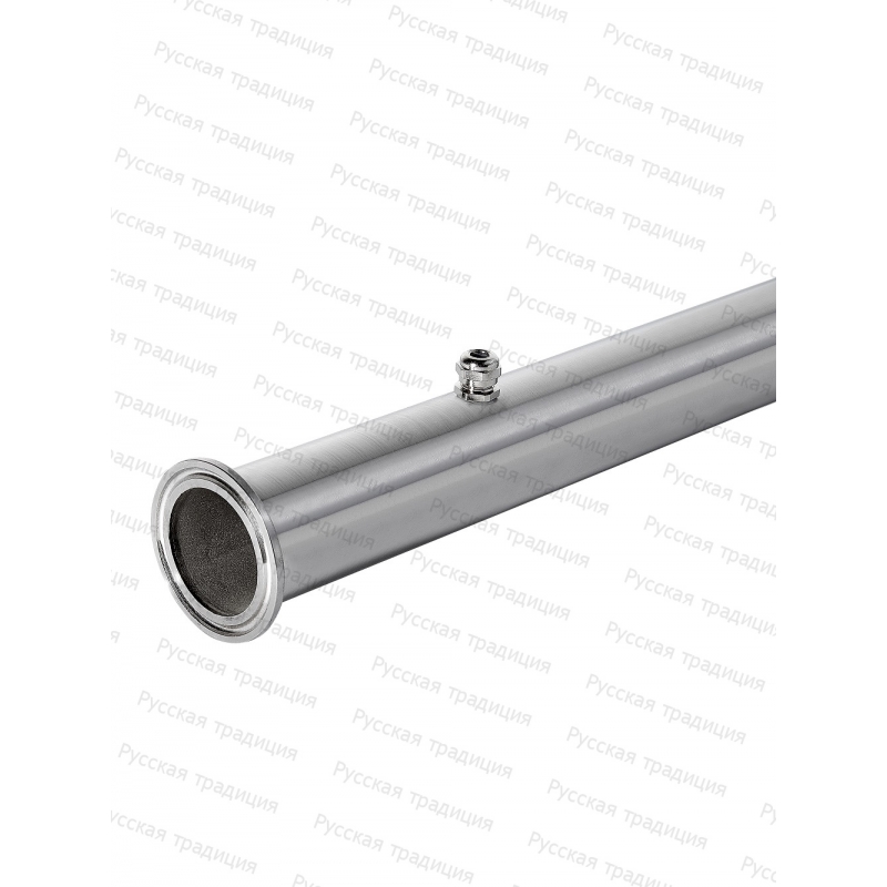 В царгу врезан зажимной ниппель под лектронный термометр. При использовании царги с ниппелем под термометр можно еще контролировать промежуточную температуру восходящих потоков пара. Ниппель подходит для всех электронных термометров с диаметром щупа до 5 мм. Ниппель находится на расстояние 10 см. от края.