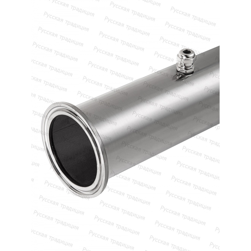 В царгу врезан зажимной ниппель под лектронный термометр. При использовании царги с ниппелем под термометр можно еще контролировать промежуточную температуру восходящих потоков пара. Ниппель подходит для всех электронных термометров с диаметром щупа до 5 мм. Ниппель находится на расстояние 15 см. от края.
