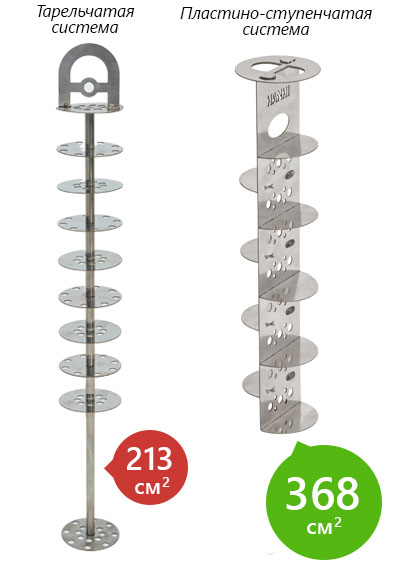 При равном колличестве пластин и тарелок, площадь пластин на 72% больше чем площади тарелок.