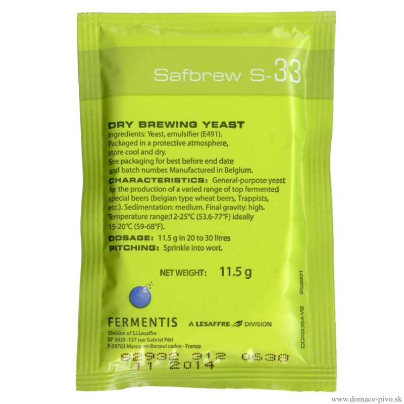 Дрожжи пивные Safale S-33 11,5 гр.