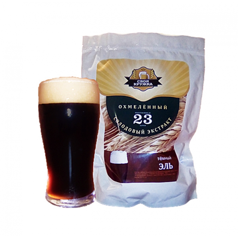 Солодовый экстракт «Своя кружка» Тёмный Эль - это готовый набор для приготовления домашнего пива. В набор входит солодовый охмелённый концентрат и пивные дрожжи. Вам не придётся самостоятельно варить сусло и охмелять его, это уже сделано на заводе.
