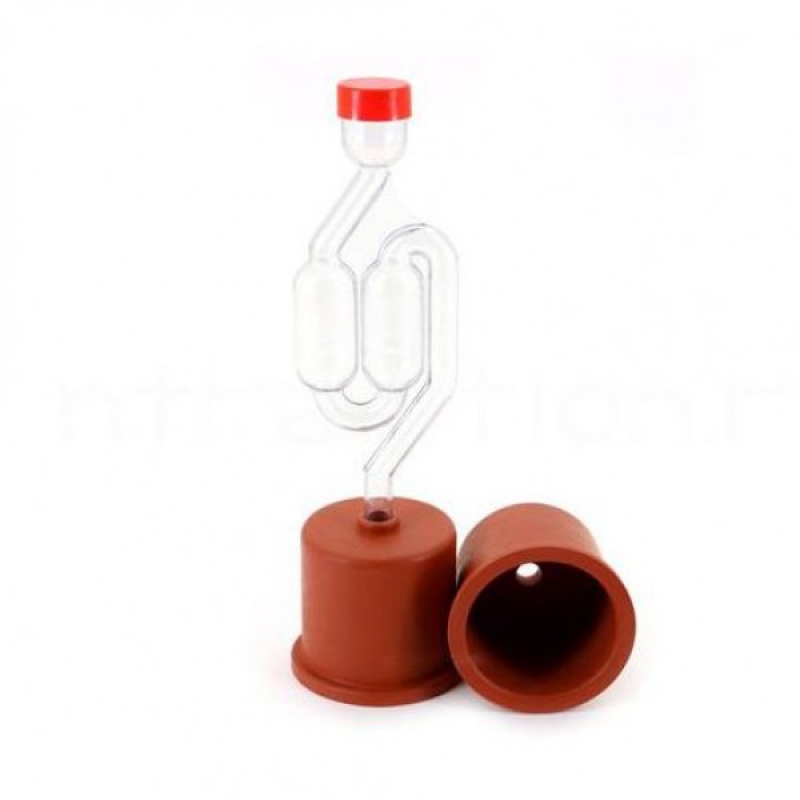 Резиновый колпачок надевается на горловину, а в отверстие вставляется обычный гидрозатвор. Размер - 40 мм. Резиновый колпачок прекрасно растягивается,что позволяет его надеть на горловины немного большего диаметра.