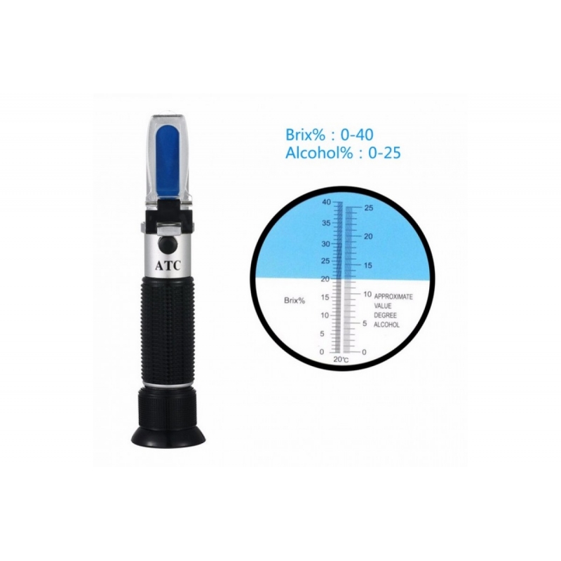 Рефрактометр - устройство, позволяющее максимально просто получить достоверные данные о процентном содержании сахара, а уже по ним, сделать теоретический вывод об объеме спирта, который может быть получен при сбраживании этого количества сахара.